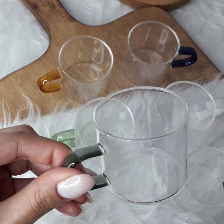 شات قهوه پیرکس دسته رنگی وارداتی