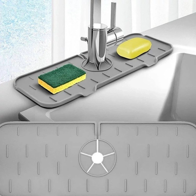 آبگیر سیلیکونی دور شیر یک محصول کاربردی برای جلوگیری از پاشیدن و تجمع آب اطراف شیر سینک است. این محصول با طراحی ساده و انعطافپذیر، دور پایه شیر قرار میگیرد و بهطور موثری آب را به داخل سینک هدایت میکند. در کنار این موارد از دو فضا برای قرار دادن شوینده و یا ابر های ظرفشویی بهره می برد. آبگیر باعث میشود تا سطح سینک همیشه خشک و تمیز بماند و از نفوذ آب به زیر سینک و آسیب به کابینتها جلوگیری شود.