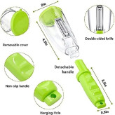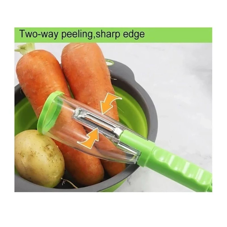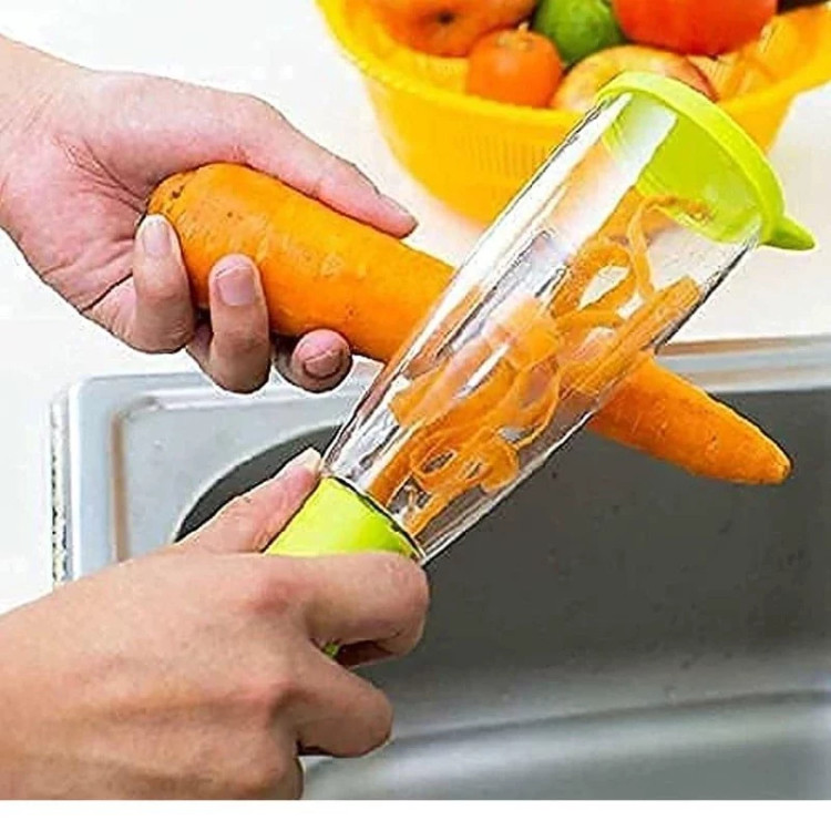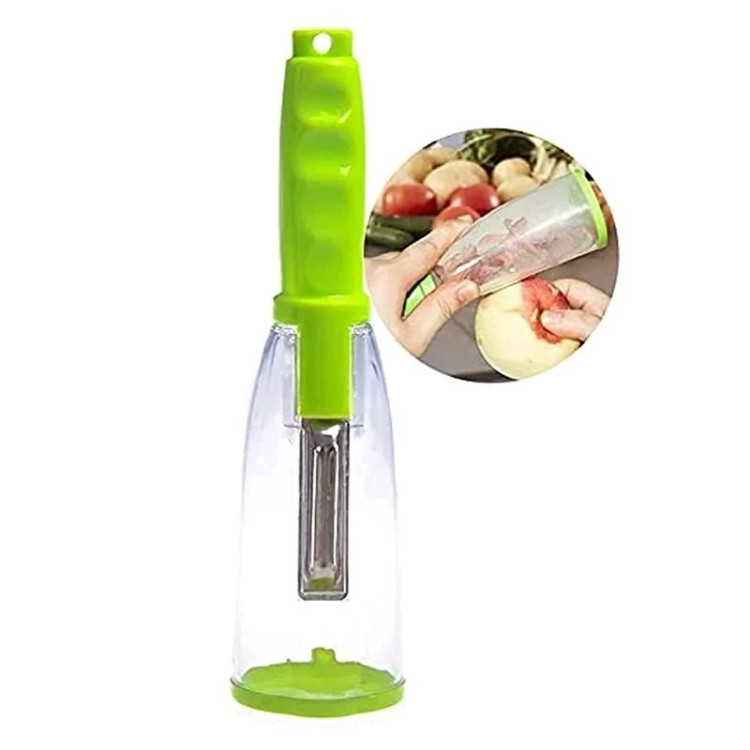 فضای بسیار کمتری را در آشپزخانه شما مصرف می کند زیرا طراحی فشرده ای دارد این دستگاه پوست کن آشپزخانه هوشمند دارای ظرفی است که پوست سبزیجات و میوه های در حال پوست کندن را جمع می کند. این دستگاه پوست کن آشپزخانه هوشمند دارای ظرفی است که پوست سبزیجات و میوه های در حال پوست کندن را جمع می کند. ظرف پوست کن آشپزخانه دارای درب است که تمیز کردن آن را آسان می کند. فقط درب آن را بردارید و با آب تمیز کنید. این پوست کن سبزیجات/میوه از فولاد ضد زنگ درجه یک ساخته شده است. از این پوست کن آشپزخانه برای جدا کردن پوست هر میوه یا سبزی به راحتی با کمک تیغه تیز استفاده کنید. تیغه ها خورنده و بدون زنگ زدگی هستند.