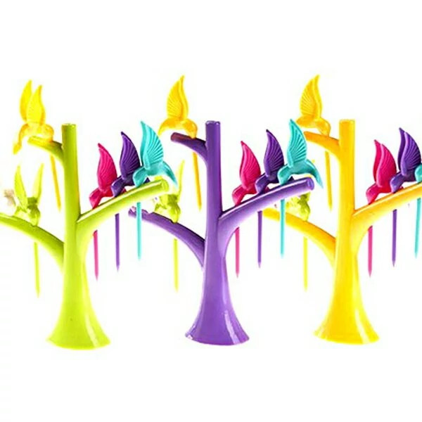 زیتون خوری درختی مناسب برای سرو زیتون و فینگرفودها و تیکه های میوه و کمپوت می باشد.این زیتون خوری درختی دارای یک درخت می باشد که روی آن پرنده های رنگی وجود دارد که شما می توانید به وسیله این پرنده های رنگی شاد زیتون و یا حتی میوه را بردارید و میل کنید.از این کبوترها به جای چنگال میوه خوری نیز می توان استفاده کرد بسیار زیبا و شیک می باشد.آرساکالا پیشنهاد میکند این ست چنگال های فانتزی مناسب برای استفاده بر روی میز های پذیرایی در منزل، رستوران، فست فورد و … طراحی گردیده است.